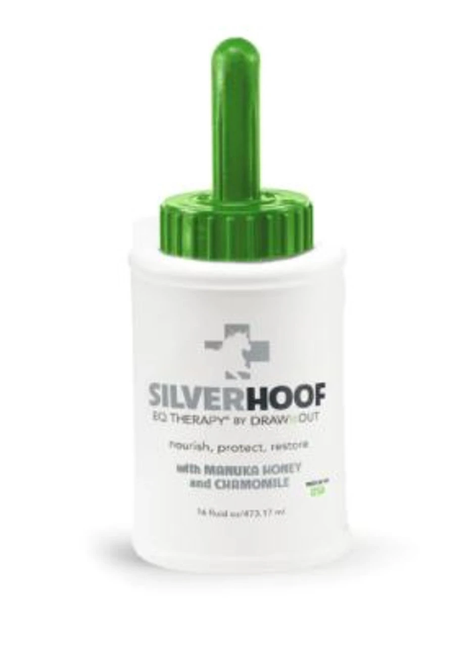 Silver Hoof EQ Therapy by Draw It Out maintains healthy hooves by providing protection against a wide spectrum of microbial infections, balancing the moisture content of the hoof, and supplying nutrients needed for strong hoof growth. Silver Hoof EQ Therapy by Draw It Out Improves dry, cracked, and chipped hooves and helps increase hoof strength and pliability to prevent cracks and also helps restore and support flexible, healthy hooves Draw It Out’s Proprietary Hoof Conditioner Blend creates breathable moisture barrier that is both Antibacterial and Anti-fungal and leaves hooves with a healthy shine.