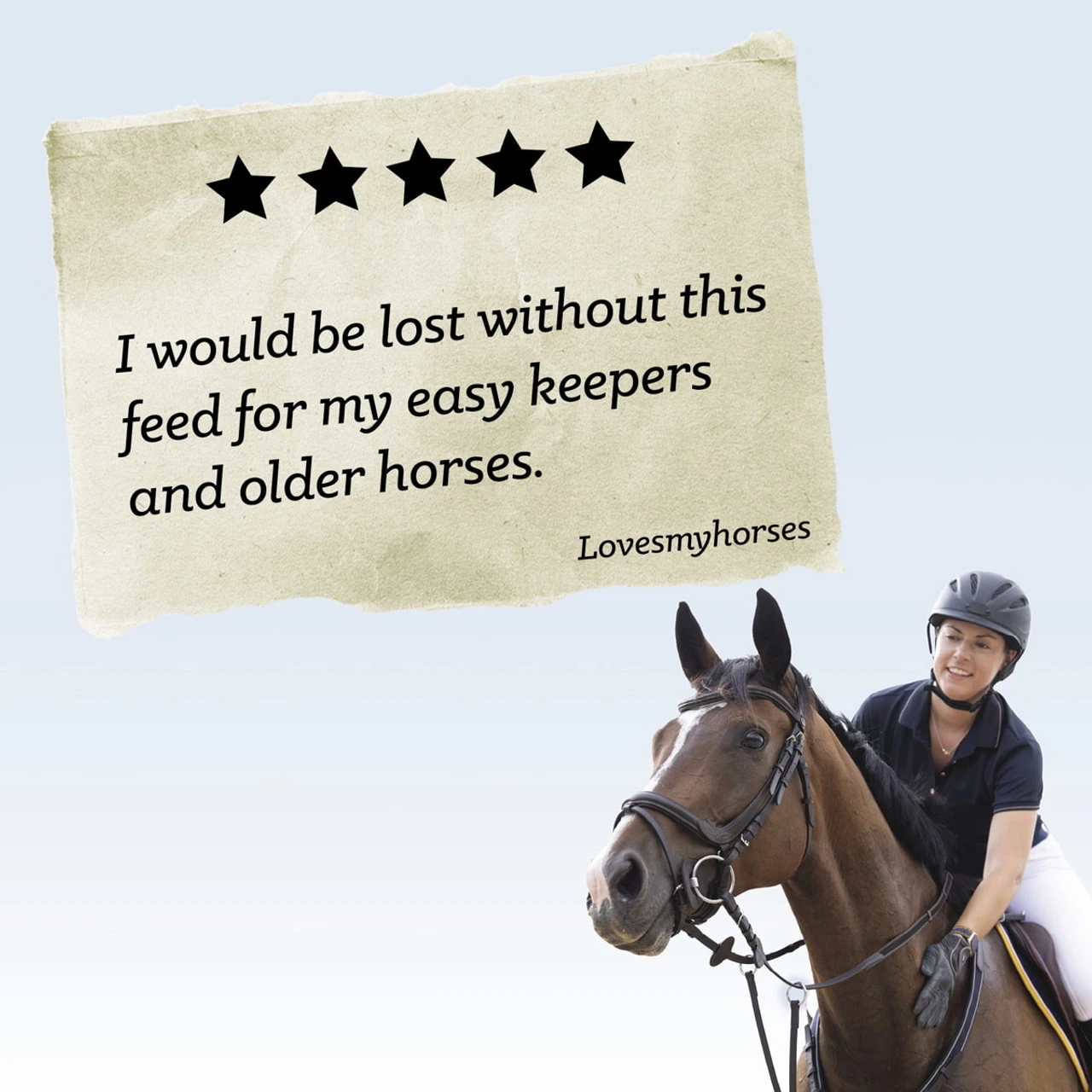 - Nutritionally balanced, low starch formula for easy keepers, metabolic