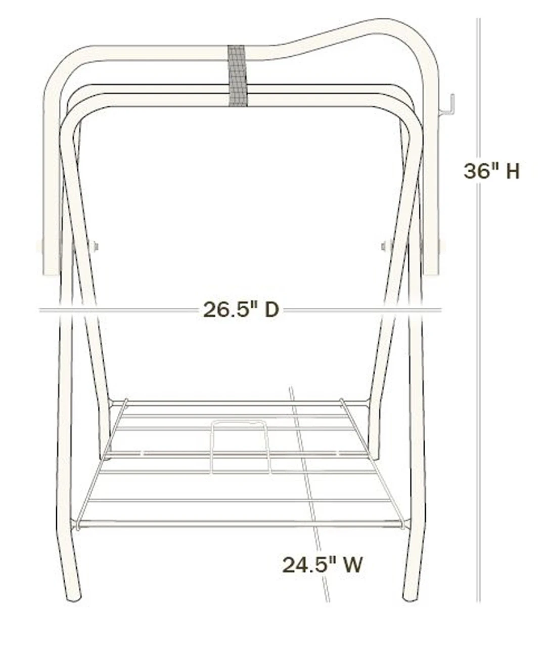 - 36″ tall x 26 1/2″ wide. The base is 24 1/2″ wide
