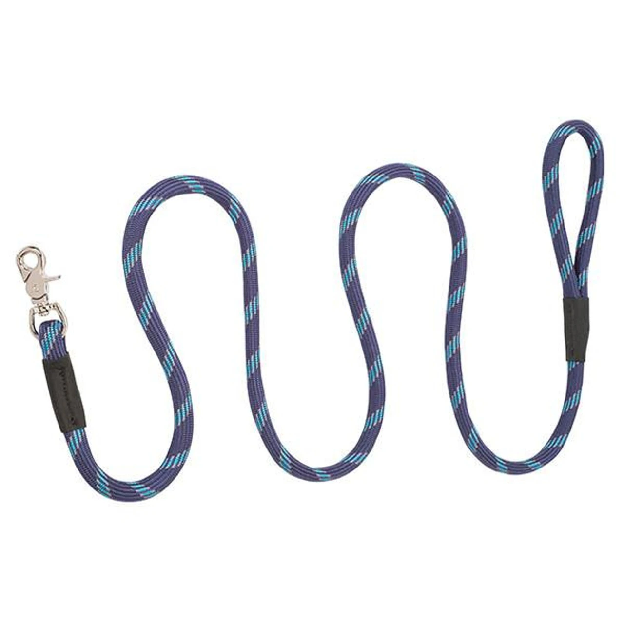 This dog leash is constructed from round braided climbing-style nylon rope with a polypropylene core to withstand rugged use. Top grain leather keeper covers the sewn ends for a finished, refined look. Features a scissor snap for attachment to collars and harnesses.This leash is constructed from round braided climbing-style nylon rope with a polypropylene core to withstand rugged use. Genuine leather covers the sewn ends for a finished look. Complete with a high-tensile strength aluminum scissor snap.